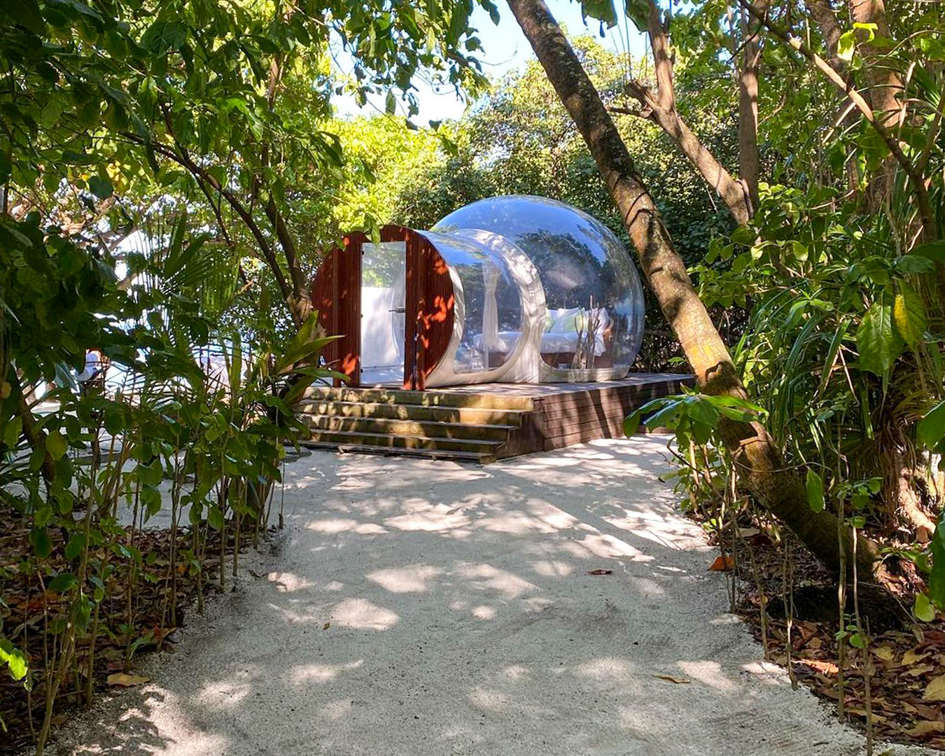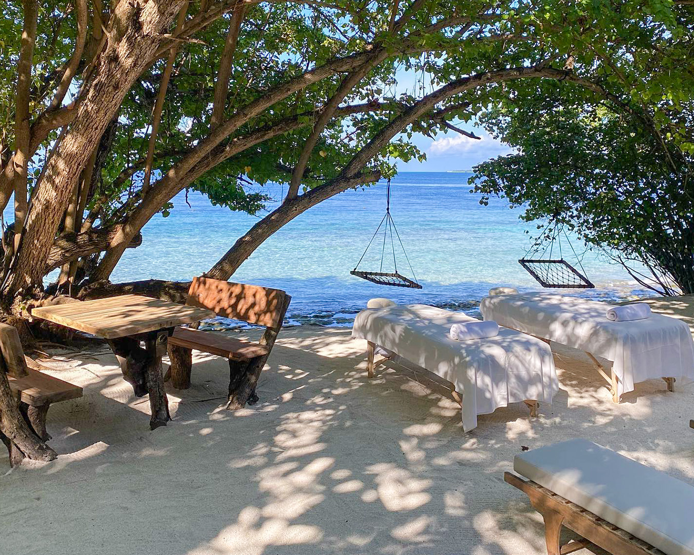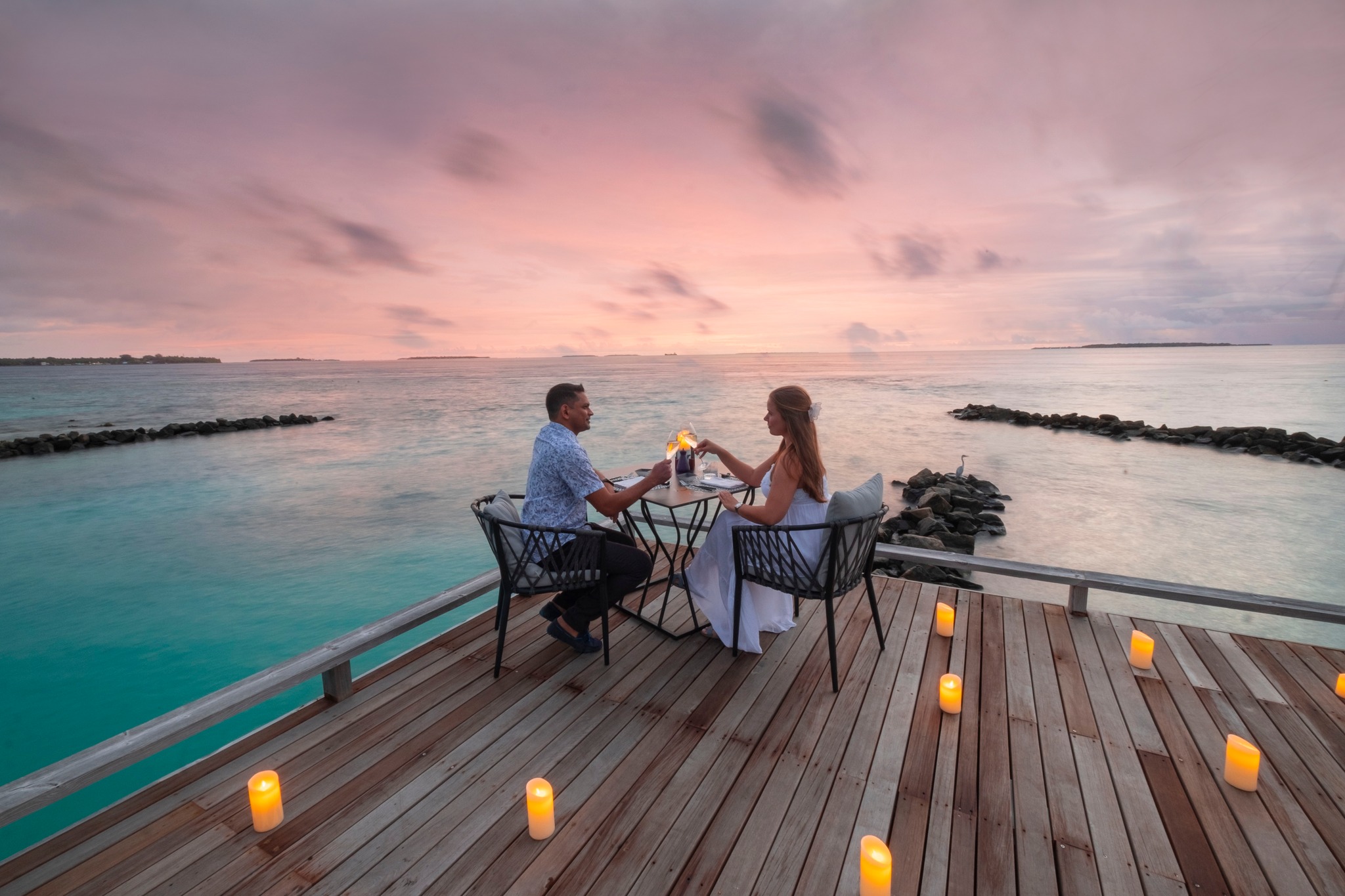 The resort is accessible via a 30-minute seaplane journey from Malé International Airport or a 15-minute domestic flight to Dharavandhoo Airport in Baa Atoll.